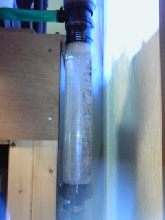 2011.06.23 Thu 05:17:15 自作 流動フィルター 稼動届きました、先日ポチりました流動ろ材。バイオビーズ。 やはり通販サイトチャームさんでしか見つけられないので、結局。 しかし翌日配送は嬉しいですね、前日頼んだ物がもう届く。 待つ楽しみというのもありますが、欲しいものがすぐ手に入るのも嬉しい。 買ってから何ですが、やはり流動ろ材、バイオビーズ、微妙な値段。 890円に送料490円、送料もこのサイズの物も一律の送料。微妙。 大そうな箱から出てきたバイオビーズ、一見何だか生活用品の 消臭ビーズやら虫除けビーズの白い版みたいな感じ。 袋を開けると、小さなスーパーボールの様で弾む。 零すとえらいことになります。零しました・・・ 先日完成した自作流動フィルターの中へコロコロ。 あまり入れると回らないとかの話なので、やや控えめに。 それでも折角買ったのだから、余ってもという貧乏根性からやや追加。 それでも余ります。逆流防止にネットを噛ましてホースとの接続。 先行して稼動しているエーハイム2213と接続。 水槽台横後ろ、控えめな場所に設置、水槽台への固定。 一応イメージ通りに設置完了。 簡単な作業ではありますがやや時間を食いました。そして、イザ稼動。 エーハイム2213の電源を入れる時はやや緊張。果たしてクルクルしてくれるのか。 そして見事にクルクル。これ、面白いですね。設置していると、やってるぞ感もありますし。 とにかく濾過能力どうこうよりも、このクルクル具合が欲しかったのです。自己満足。 見ているとやはり流動フィルターの底部と、本体の仕切りは正解の様ですね。 ろ材が下に溜まる事無く仕切りを挟んでクルクルと回ります。 静止画で分かりにくいですが稼動状態デス が、やや問題。写真からも分かる様に、ろ材が下ではなく、上に溜まる。 こういう物なのであろうか、まさか違いますよね。やや問題です。 原因は、ろ材が多かったのか、仕切りの長さが足りなかったか、どちら共か。 仕切りと上面の間隔もポイントだったのでしょう。底部同様、上面も、 角度を付ける事が必要だったのでしょうか。考えが足りませんでしたね。 まさか、ろ材が上に溜まるのまでは考えていなかったのです。 やられました、底ばかり意識していました。なるほどね、流動さん。 しかし、今更取り外してろ材を抜く事も大変に面倒、 仕切りに関しては、流動フィルター本体は完全に密閉しているので無理。 今更どうにもできません。まあ良いでしょう。一応クルクルしてるし・・・ このままでOKという事で、自作流動フィルター、無事稼動! まずまずでないでしょうか。満足感アリ。 問題はないと思いますが一応水漏れが無いか、目詰まりしないか様子を伺い、 そして、果たして茶玉になってしまうのか見守って行きたいと思います。 PR 冷却性能の比較・電力、ポンプとの関係など・推奨クーラー・推奨ポンプの紹介