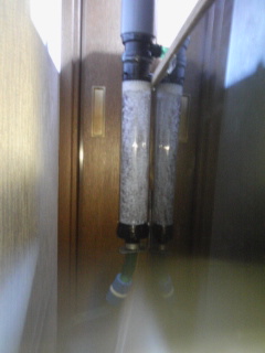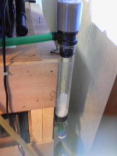 2011.06.23 Thu 05:17:15 自作 流動フィルター 稼動届きました、先日ポチりました流動ろ材。バイオビーズ。 やはり通販サイトチャームさんでしか見つけられないので、結局。 しかし翌日配送は嬉しいですね、前日頼んだ物がもう届く。 待つ楽しみというのもありますが、欲しいものがすぐ手に入るのも嬉しい。 買ってから何ですが、やはり流動ろ材、バイオビーズ、微妙な値段。 890円に送料490円、送料もこのサイズの物も一律の送料。微妙。 大そうな箱から出てきたバイオビーズ、一見何だか生活用品の 消臭ビーズやら虫除けビーズの白い版みたいな感じ。 袋を開けると、小さなスーパーボールの様で弾む。 零すとえらいことになります。零しました・・・ 先日完成した自作流動フィルターの中へコロコロ。 あまり入れると回らないとかの話なので、やや控えめに。 それでも折角買ったのだから、余ってもという貧乏根性からやや追加。 それでも余ります。逆流防止にネットを噛ましてホースとの接続。 先行して稼動しているエーハイム2213と接続。 水槽台横後ろ、控えめな場所に設置、水槽台への固定。 一応イメージ通りに設置完了。 簡単な作業ではありますがやや時間を食いました。そして、イザ稼動。 エーハイム2213の電源を入れる時はやや緊張。果たしてクルクルしてくれるのか。 そして見事にクルクル。これ、面白いですね。設置していると、やってるぞ感もありますし。 とにかく濾過能力どうこうよりも、このクルクル具合が欲しかったのです。自己満足。 見ているとやはり流動フィルターの底部と、本体の仕切りは正解の様ですね。 ろ材が下に溜まる事無く仕切りを挟んでクルクルと回ります。 静止画で分かりにくいですが稼動状態デス が、やや問題。写真からも分かる様に、ろ材が下ではなく、上に溜まる。 こういう物なのであろうか、まさか違いますよね。やや問題です。 原因は、ろ材が多かったのか、仕切りの長さが足りなかったか、どちら共か。 仕切りと上面の間隔もポイントだったのでしょう。底部同様、上面も、 角度を付ける事が必要だったのでしょうか。考えが足りませんでしたね。 まさか、ろ材が上に溜まるのまでは考えていなかったのです。 やられました、底ばかり意識していました。なるほどね、流動さん。 しかし、今更取り外してろ材を抜く事も大変に面倒、 仕切りに関しては、流動フィルター本体は完全に密閉しているので無理。 今更どうにもできません。まあ良いでしょう。一応クルクルしてるし・・・ このままでOKという事で、自作流動フィルター、無事稼動! まずまずでないでしょうか。満足感アリ。 問題はないと思いますが一応水漏れが無いか、目詰まりしないか様子を伺い、 そして、果たして茶玉になってしまうのか見守って行きたいと思います。 PR 冷却性能の比較・電力、ポンプとの関係など・推奨クーラー・推奨ポンプの紹介